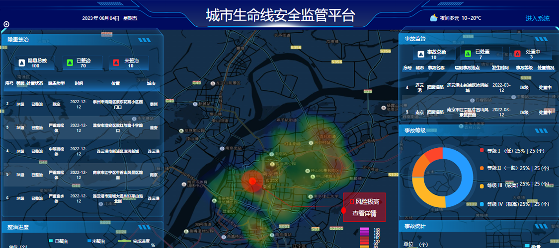 1、創新性使用“綜合監管+智慧監測”的思路,統籌信息化建設與規范化管理,打造省、市、縣三級城市安全運行智慧監管系統;充分融合行業前沿算法模型,實現城市基礎設施的風險識別、預警研判、分級處置和閉環管理。